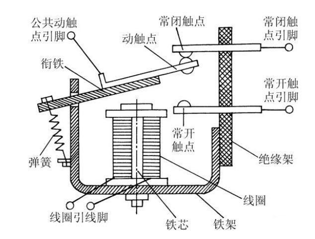 對于電磁繼電器的各個觸點:在線圈未通電的條件下,處于斷開狀態的觸點為“常開觸點”,處于接通狀態的觸點為”常閉觸點”